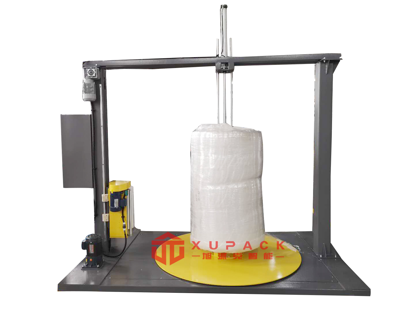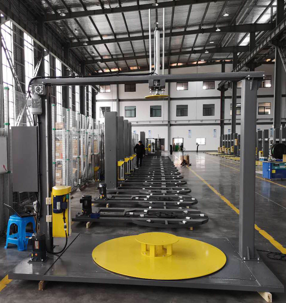 應用于單件較輕貨物或多件較輕小型貨物組合的纏繞包裝。設備上方裝有圓盤,在包裝過程對產品進行壓頂,保證產品不會出現移位和倒塌。能夠提高物流效率、減少裝運過程中的損耗,具有防
